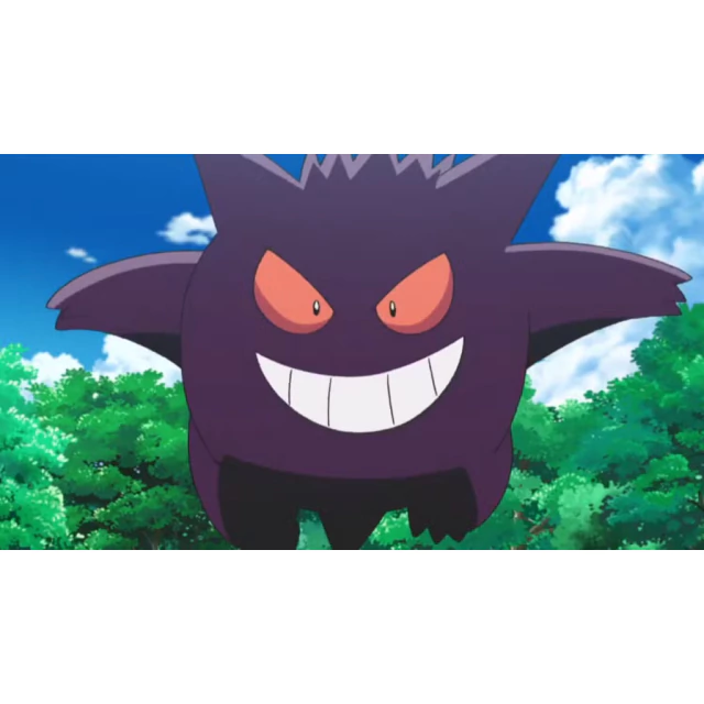 Gengar é um Pokémon do tipo Fantasma/Venenoso conhecido por sua aparência sombria e sorriso travesso.